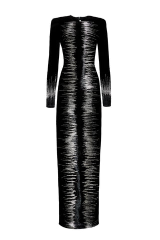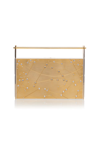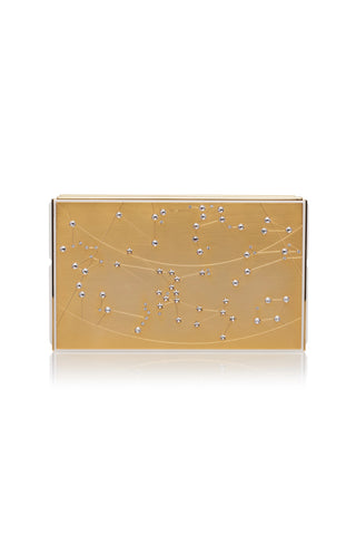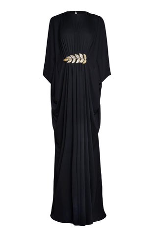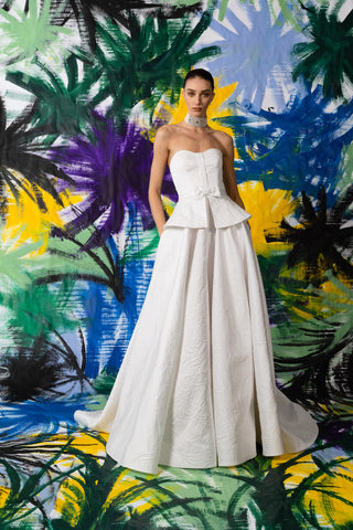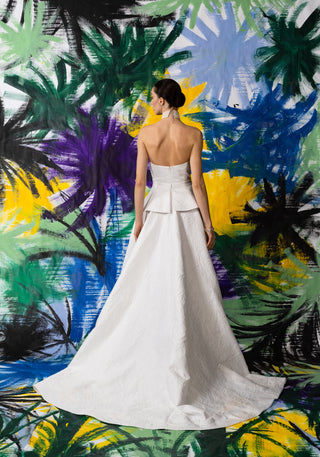 Geometric Embellished Strapless Jumpsuit with Gold Silk Cape