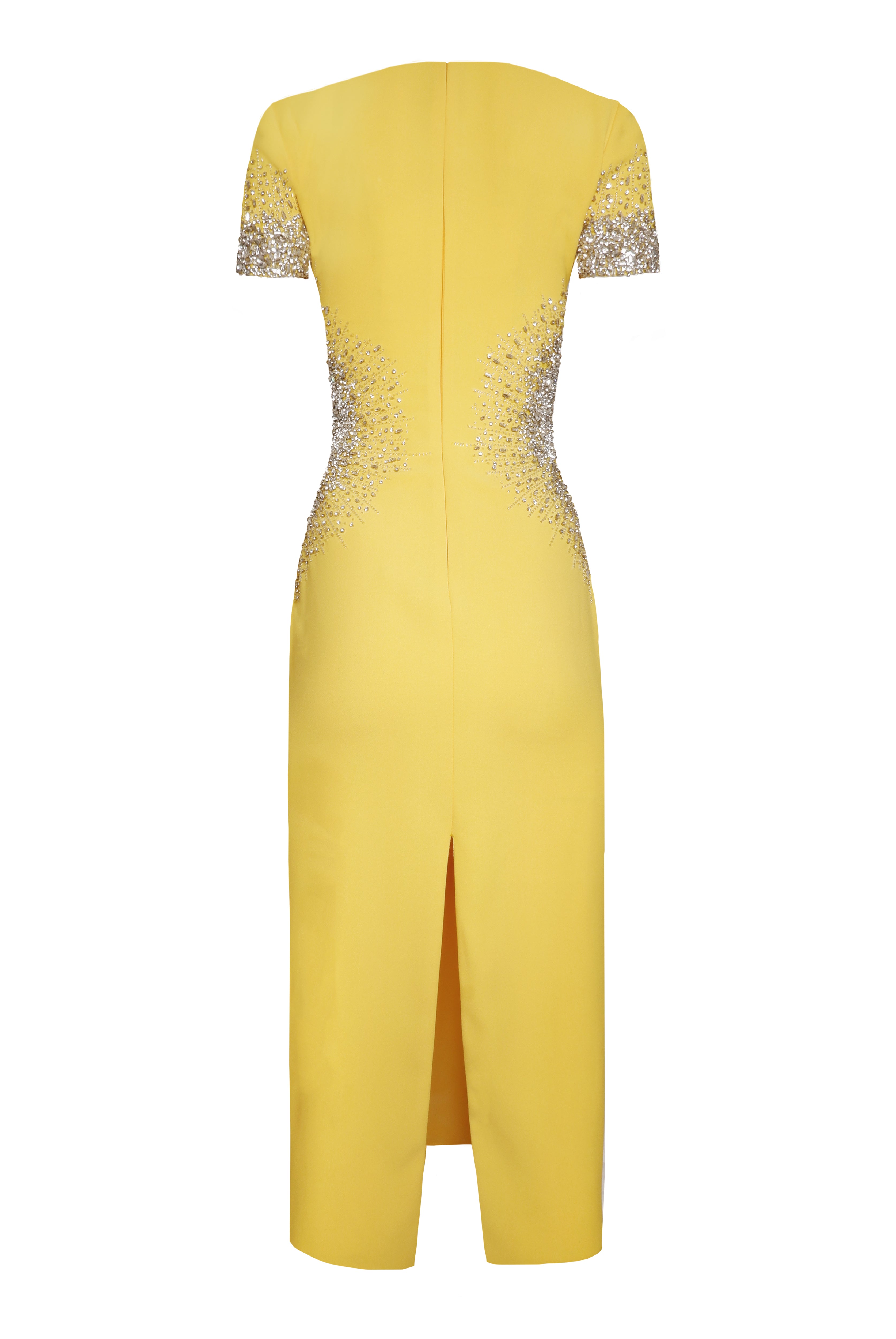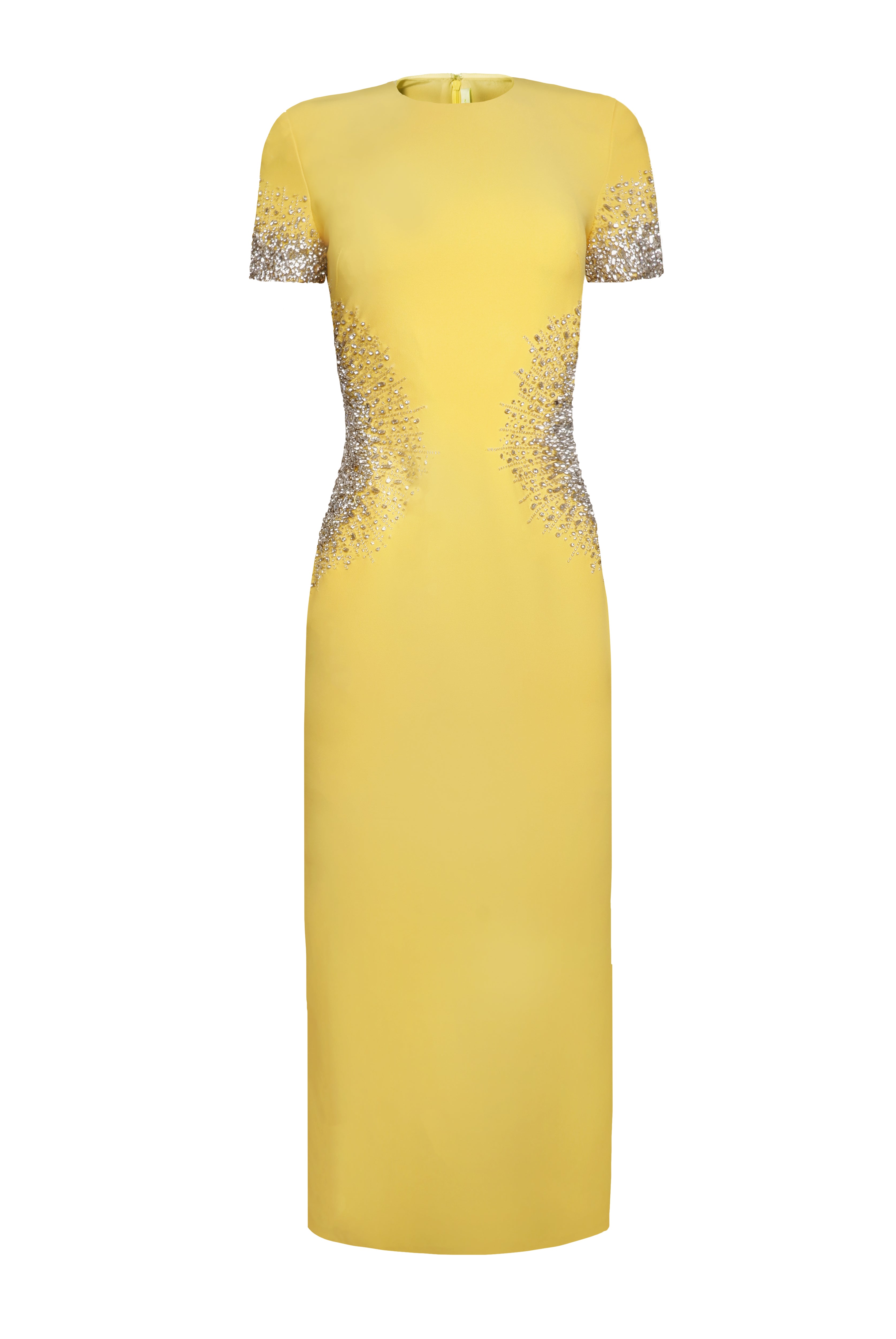 JEWEL NECK CAP SLEEVE TEA LENGTH DRESS