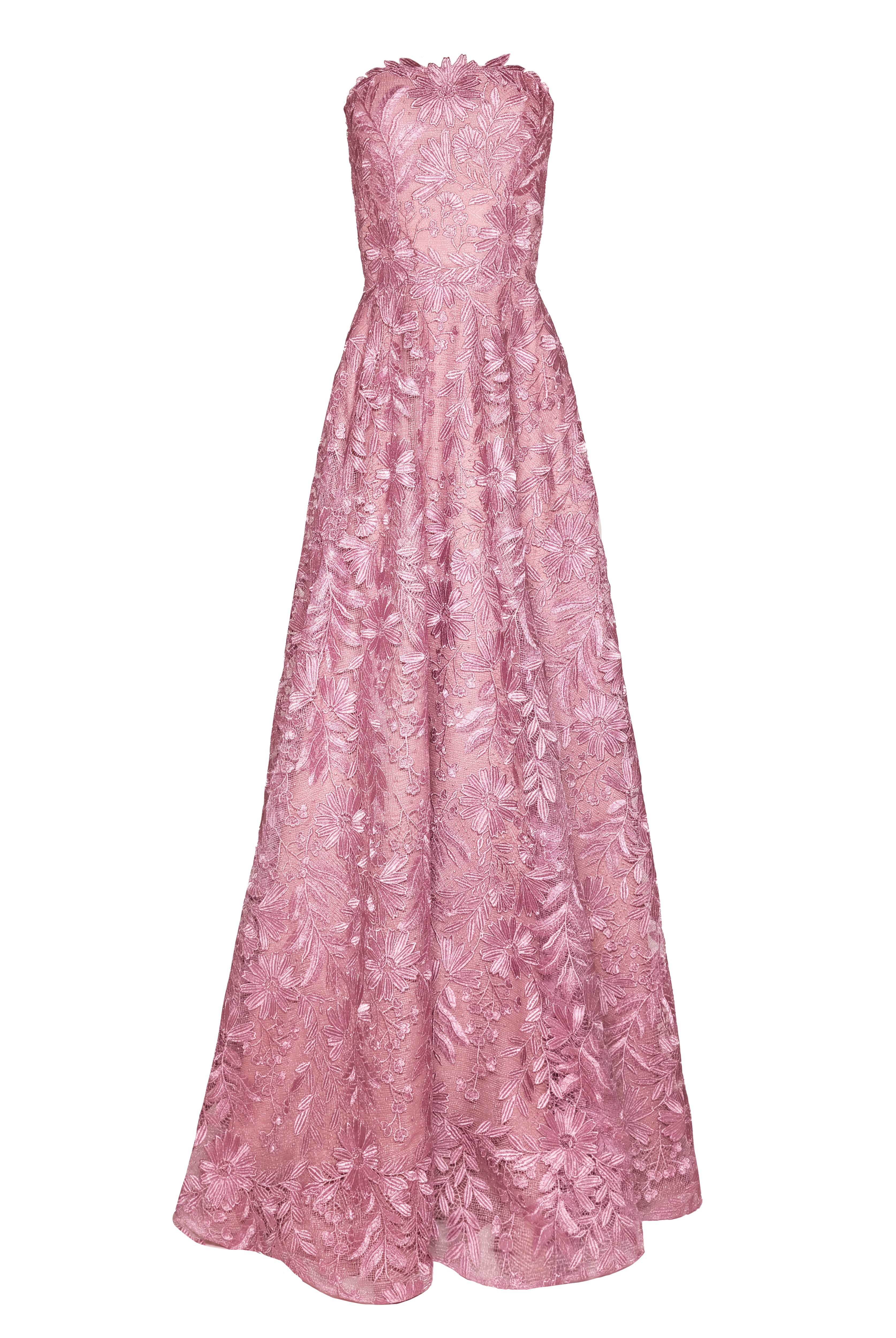 METALLIC LACE STRAPLESS GOWN