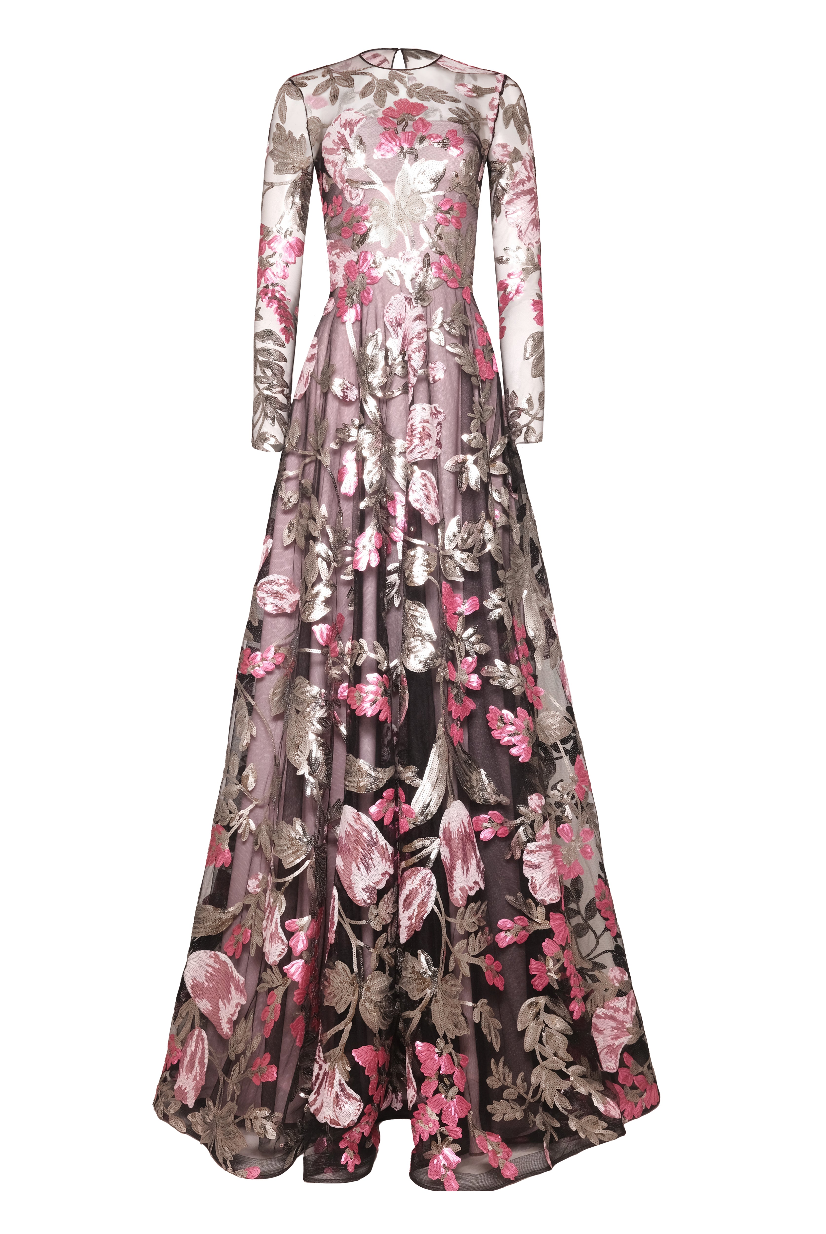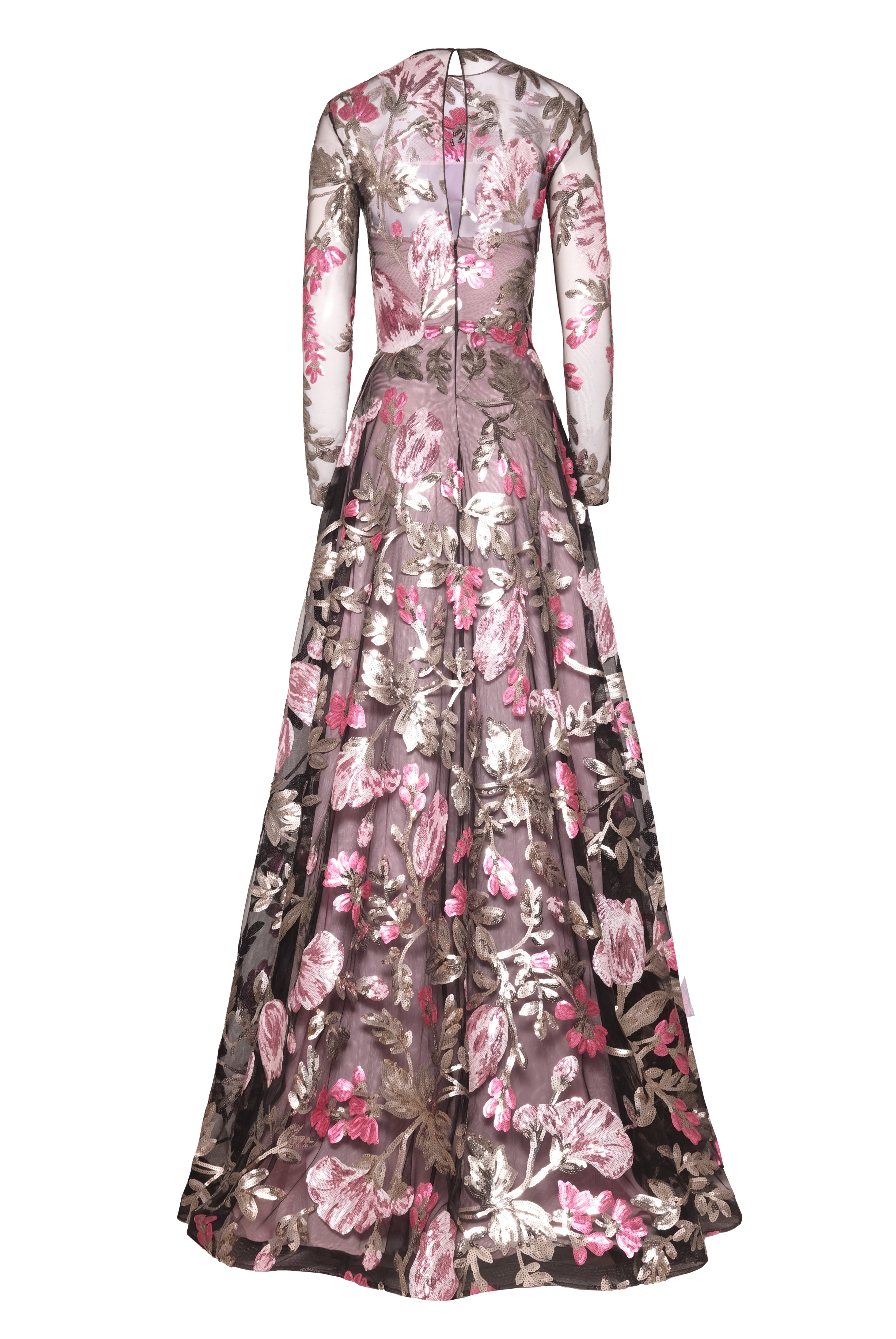 SEQUIN FLORAL LONG SLEEVE GOWN