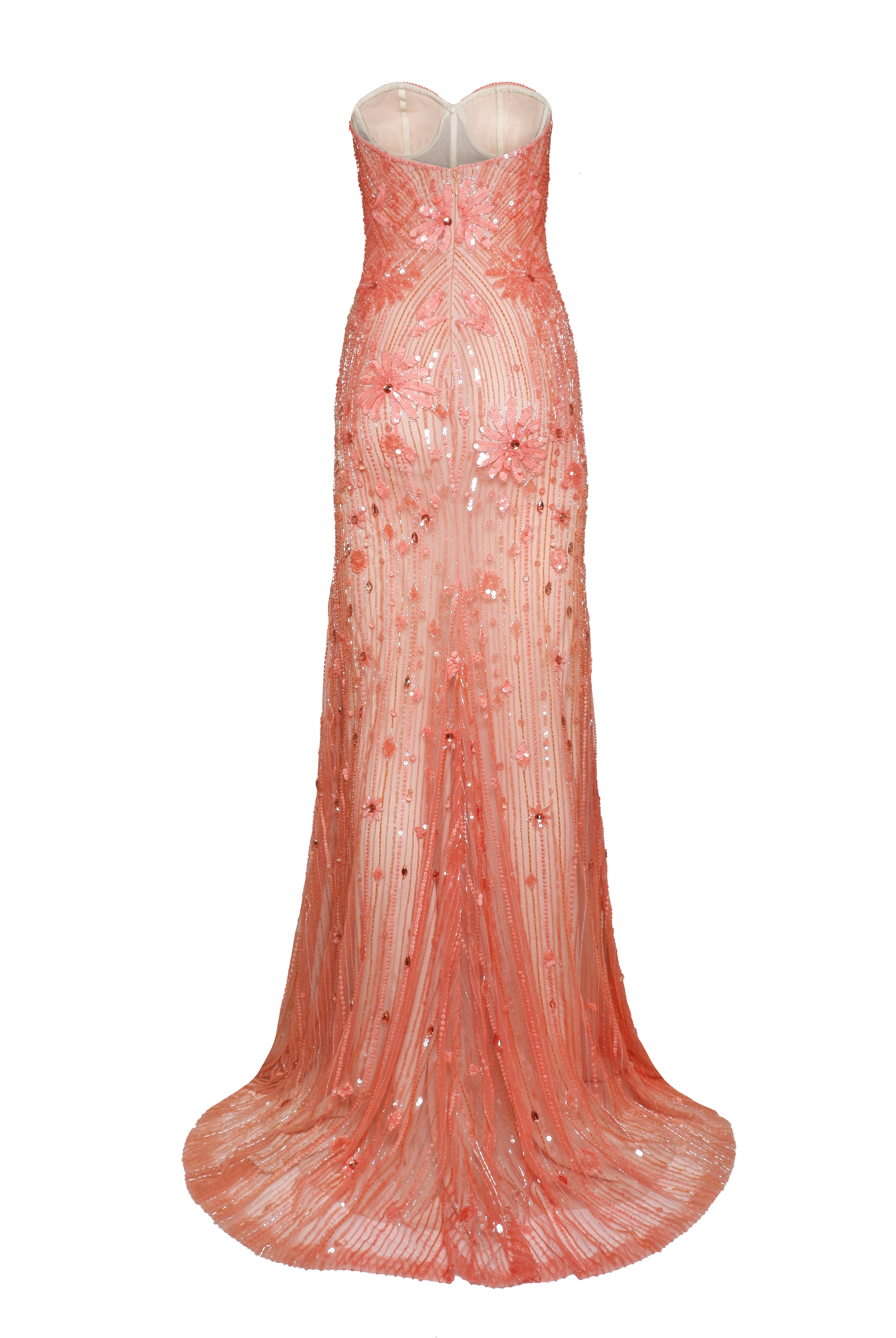 FLORAL BEADED SWEETHEART FIT-AND-FLARE GOWN