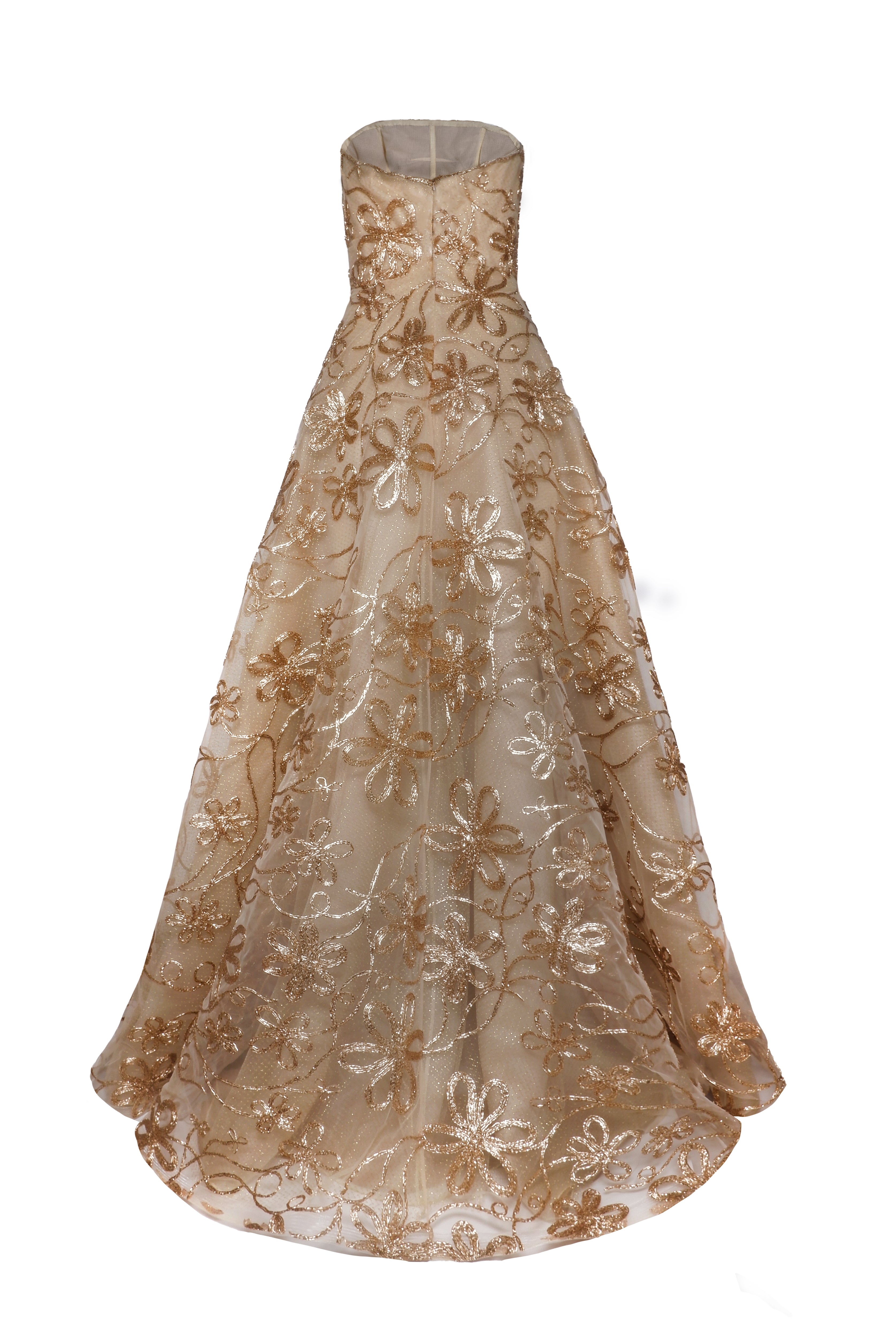 METALLIC RAFFIA STRAPLESS GOWN