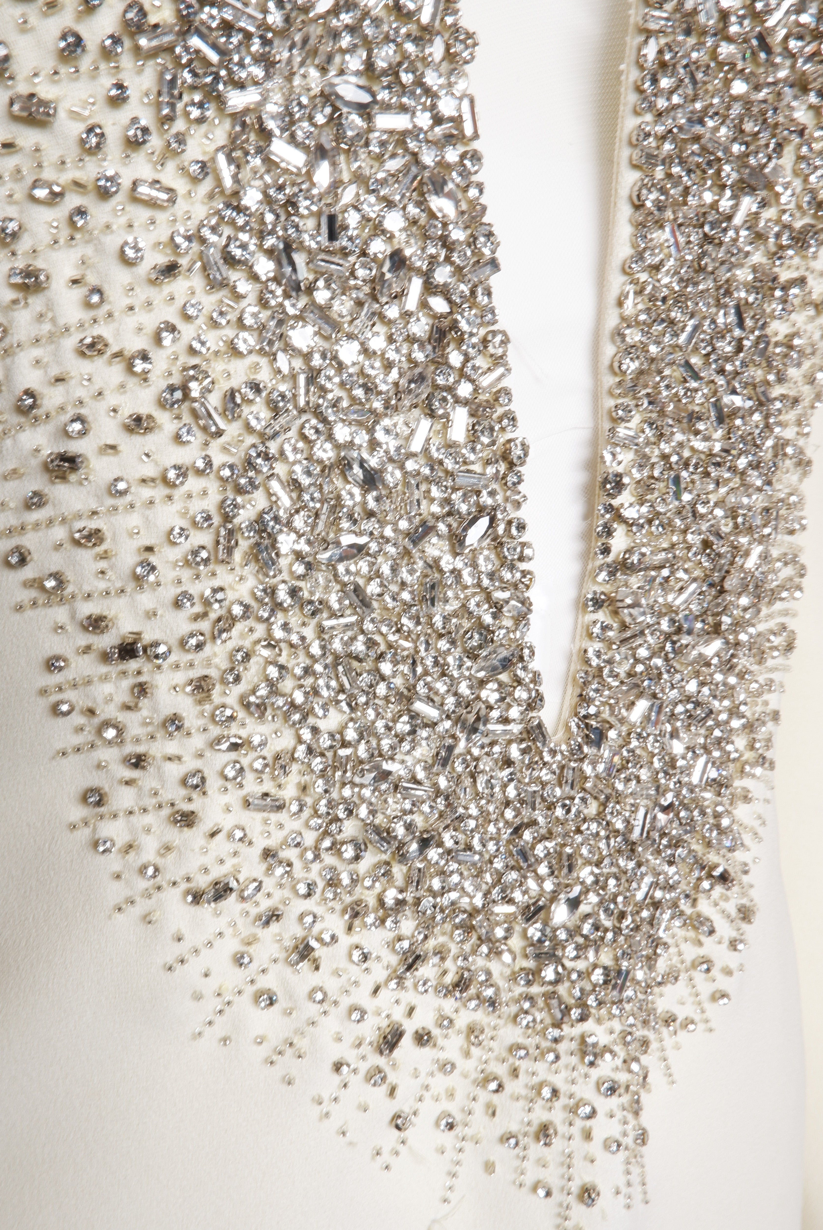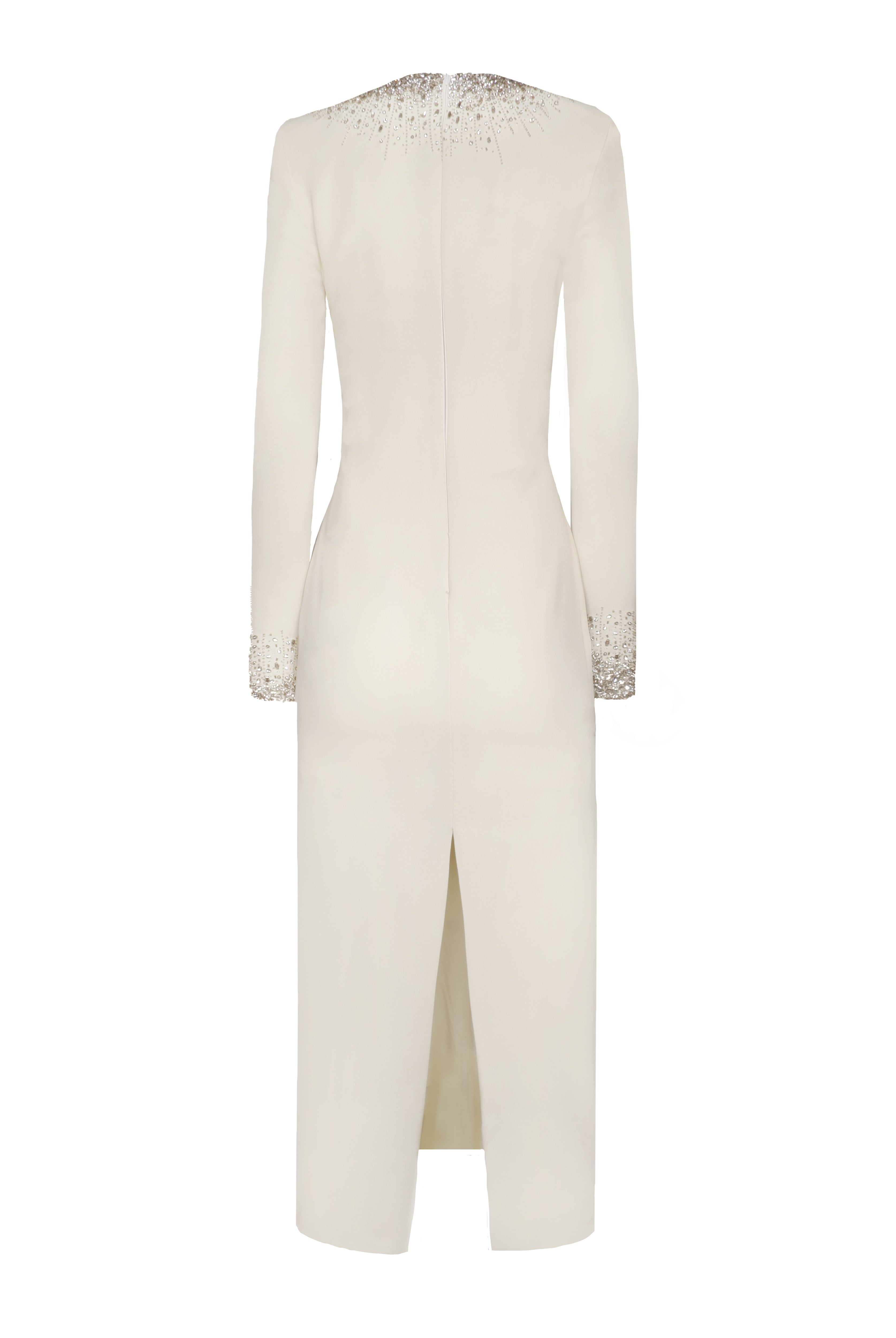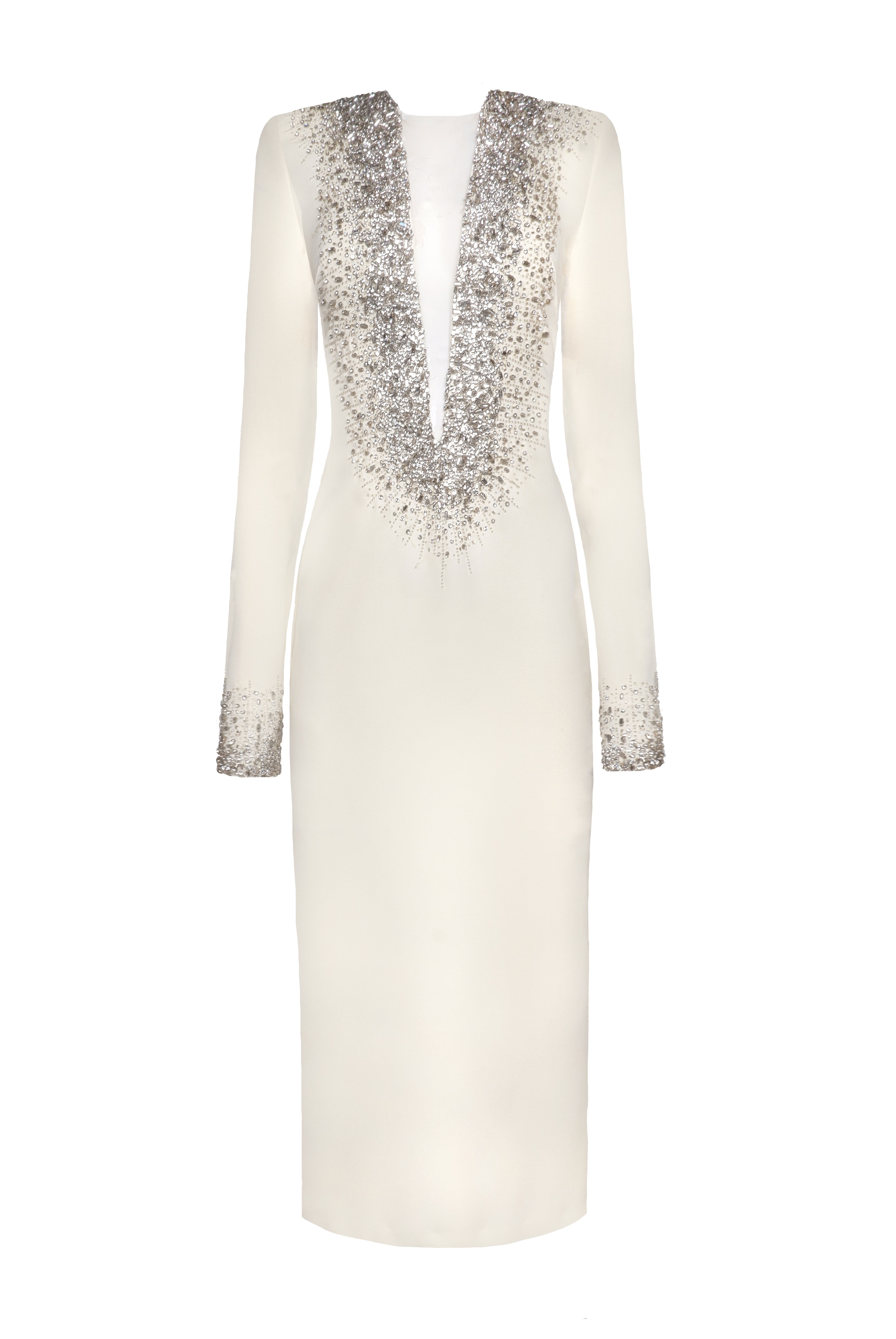 CRYSTAL EMBELLISHED V-NECK TEA-LENGTH DRESS