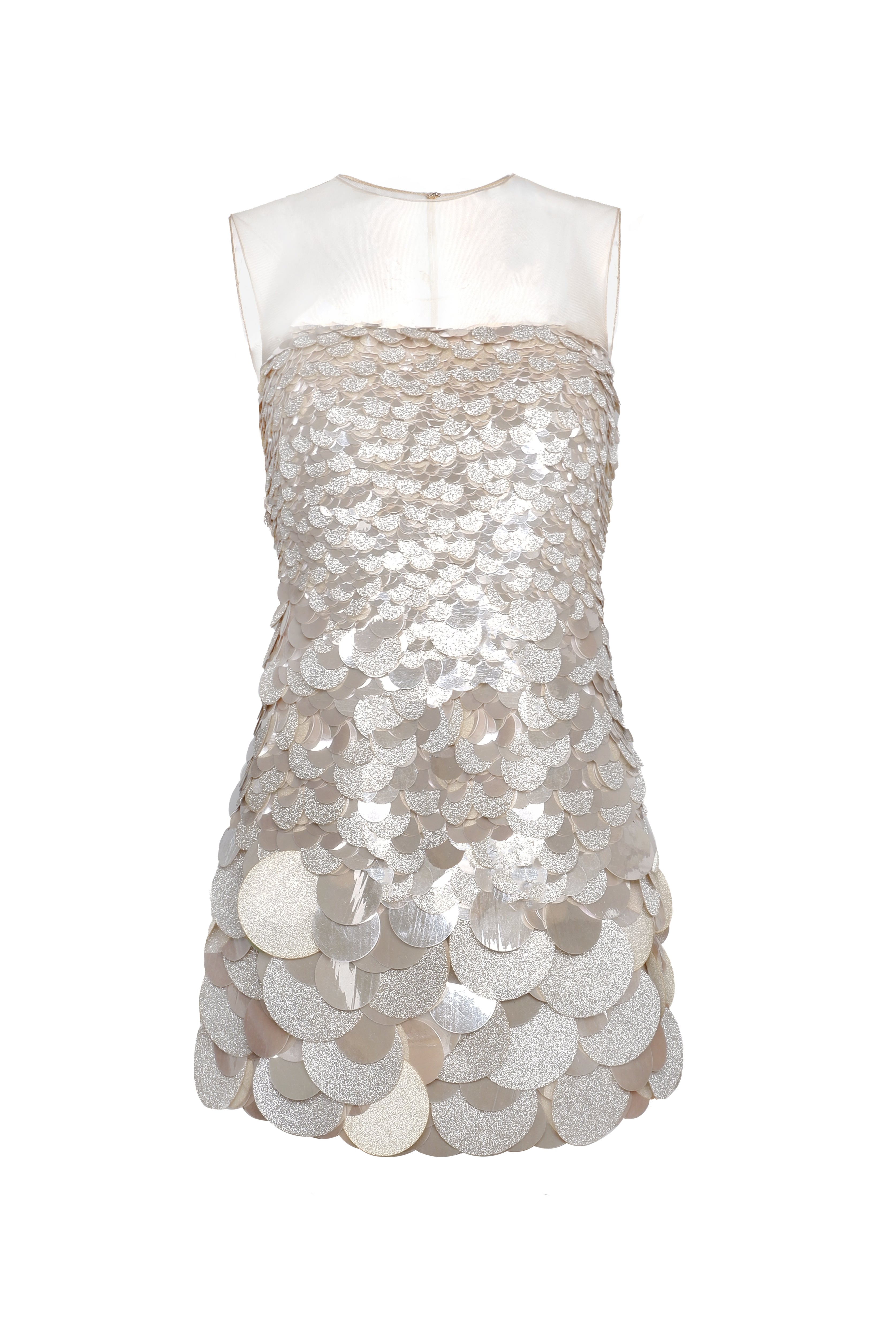 PAILETTE SEQUIN ILLUSION NECKLINE DRESS